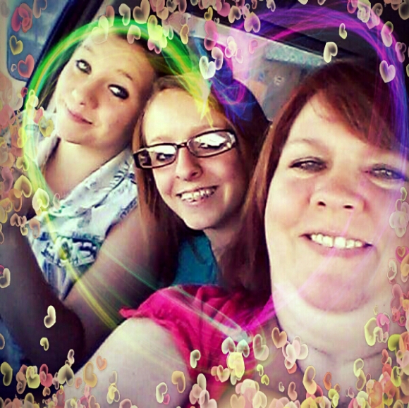 Of course, I was on a roll; so, I found another photo I was inspired to create a little magic on. The photo is my daughter Malinda with her twin teenagers. I decided to add flair and some love.