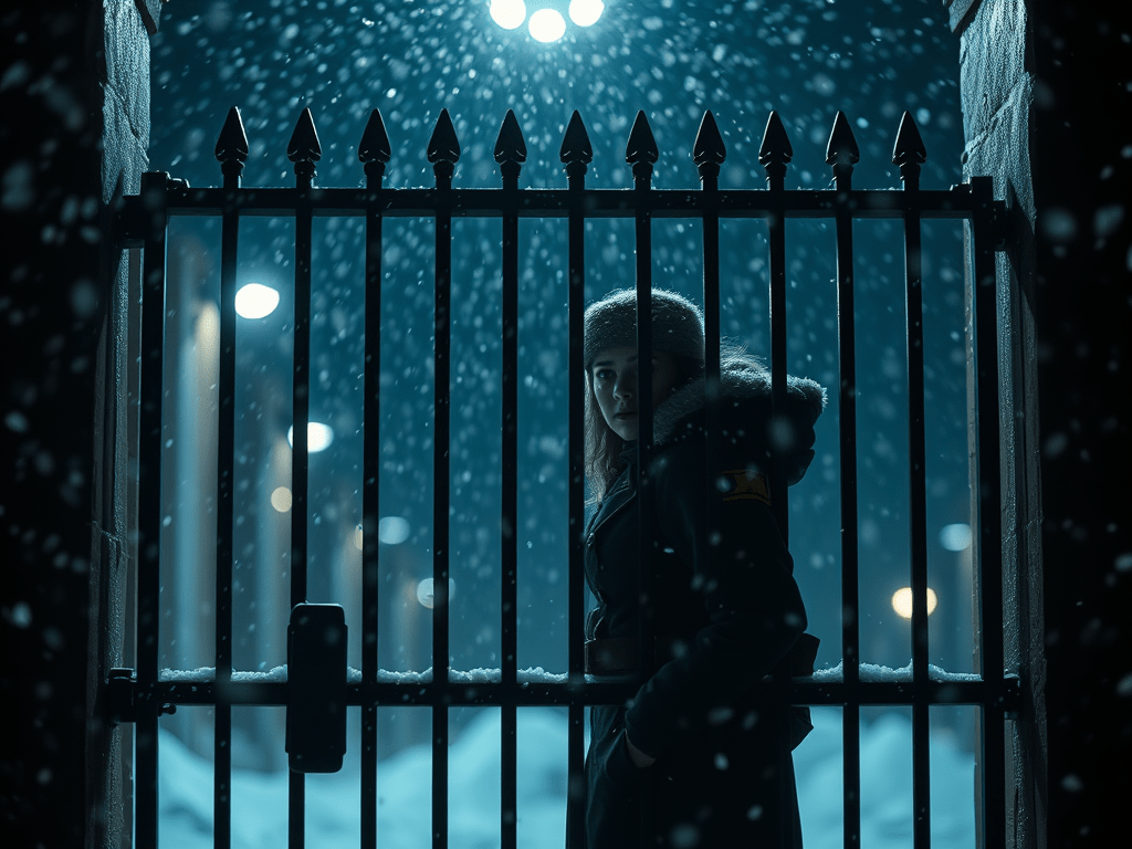 After walking a sweep of my area, I stood inside the gate house to call in my report to the other gate. As I hung up the bat phone, something red was advancing on my position. I readied my M16 and stepped back out into the snow.